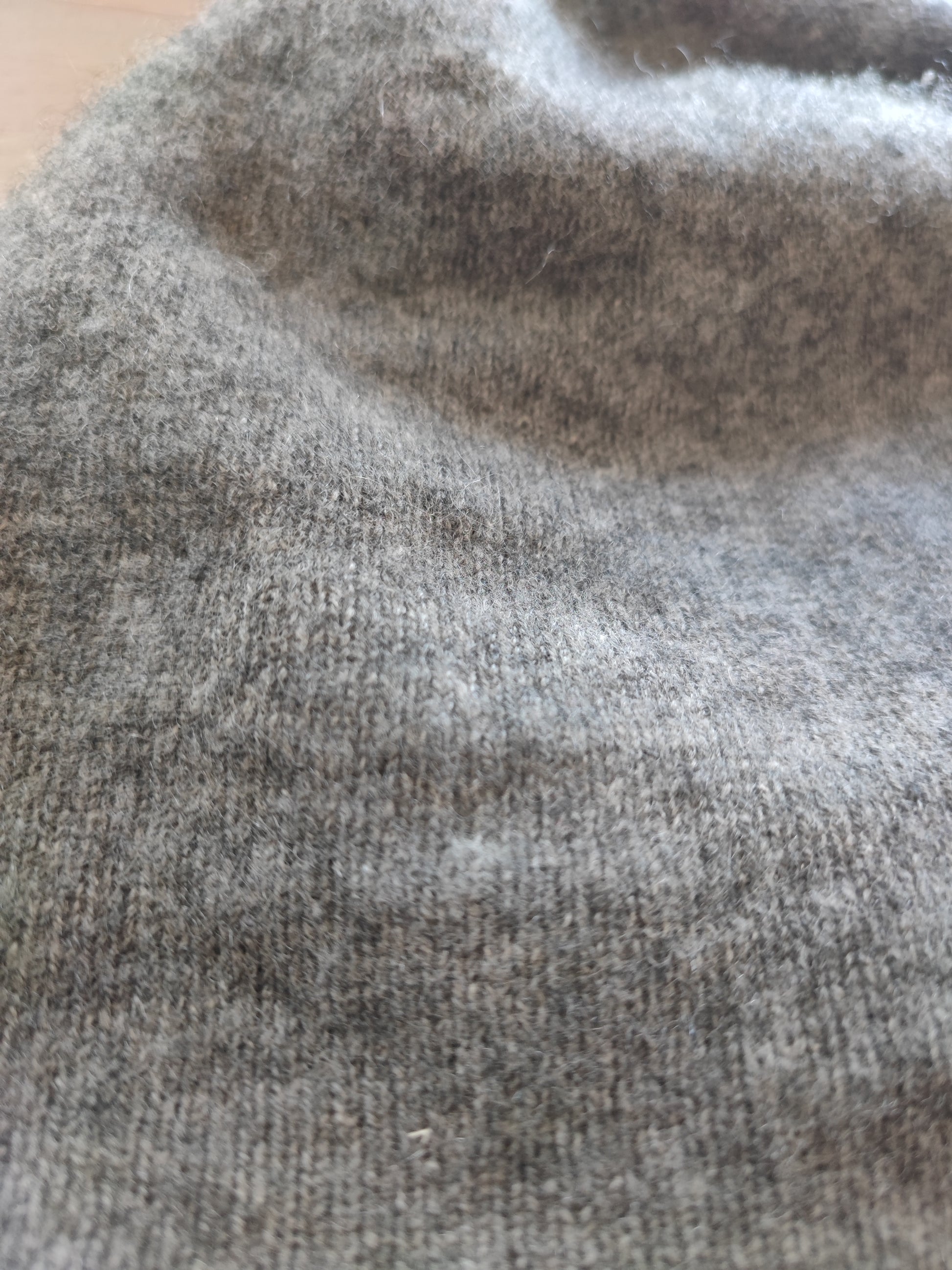 En enkel og varm lue med tynt stoff i Kasjmir i mellomgrå farge. Den har små masker og det gjør at luen holder på formen og gir god beskyttelse. Kasjmir har god effekt på varmen og derfor kan man gå med tynnere luer som varmer like godt. De små maskene gir et klassisk utseende, samtidig som det er halvtykt og godt egnet for det norske klimaet – akkurat passe for kalde vinterdager.